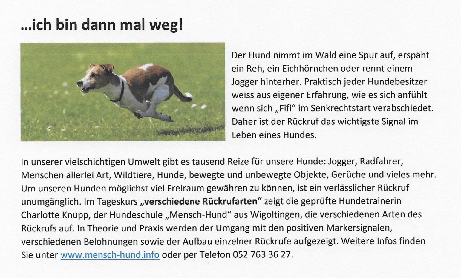 Treffpunkt: wird nach der Anmeldung bekannt gegeben